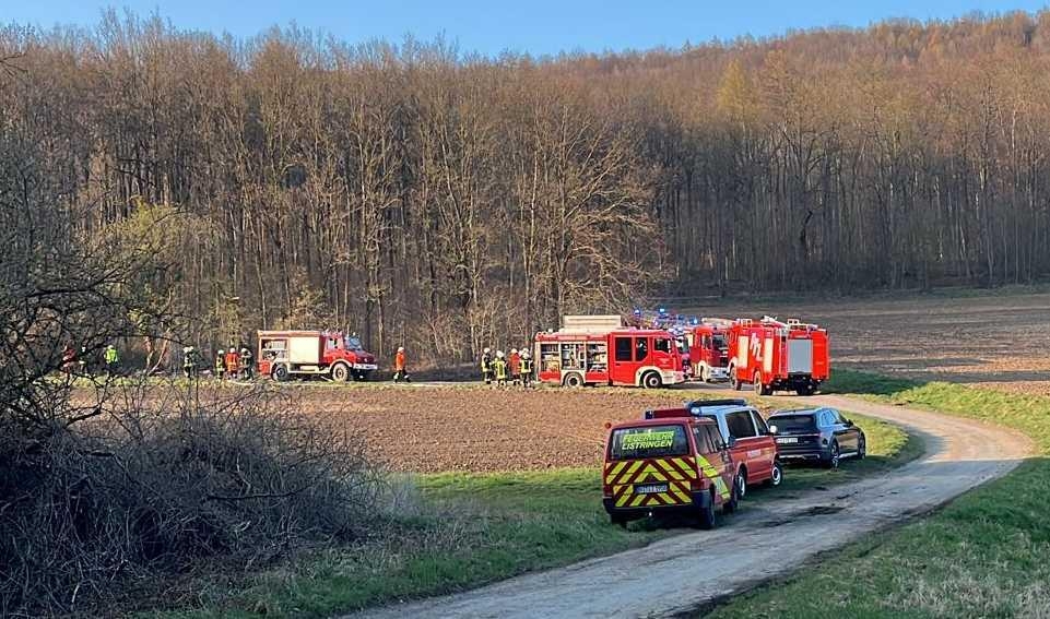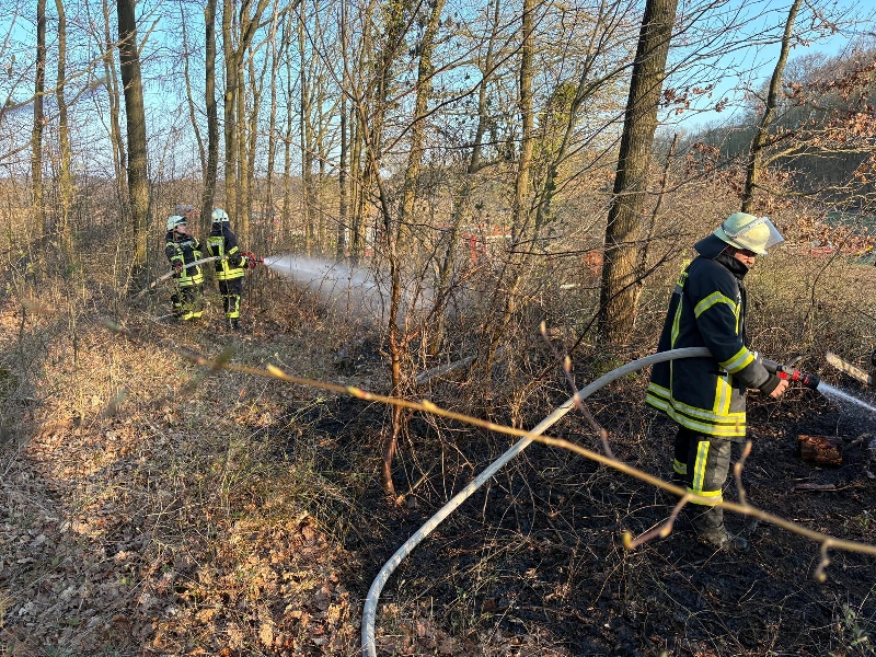 Beim Eintreffen brannte eine etwa 50 m² große Waldfläche, ausgehend vom
